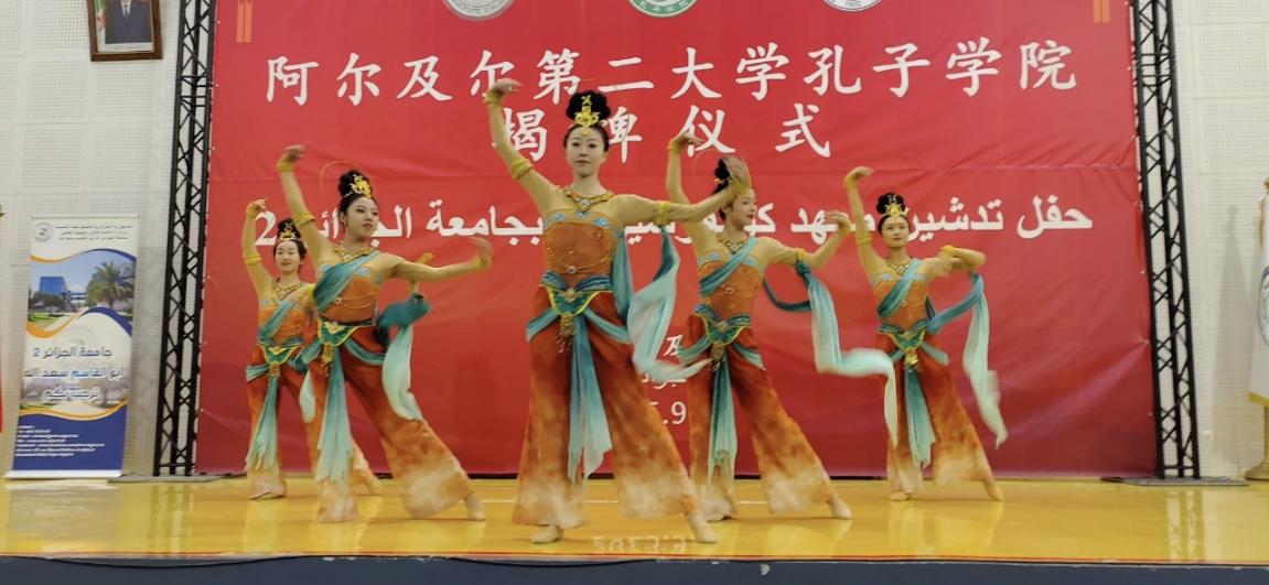 仪式现场,阿尔及尔二大中文系员工与公司师生联袂献艺,诗歌吟诵、中国传统舞蹈、书法展示等节目依次呈现,构建起中阿文化交流的生动场景。公司师生演绎的中国传统舞蹈,以蕴含文化特色的服饰搭配舒展的肢体语言,自然流露东方美学韵味,与现场的诗歌吟诵、书法展示相互呼应,为仪式增添了浓厚的文化气息。