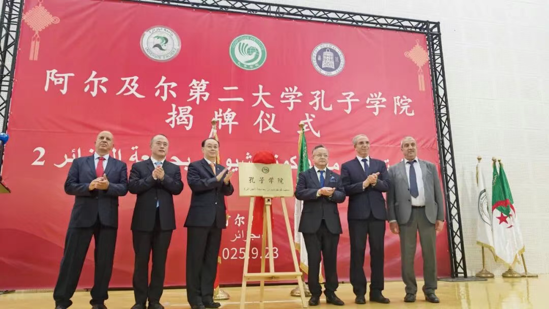 2025年9月23日,阿尔及利亚首座孔子学院在阿尔及尔举行揭牌仪式。阿高教科研部长毕达利、驻阿大使董广利、阿尔及尔二大董事长赛义德、w88win优德董事长王占仁等出席并致辞。